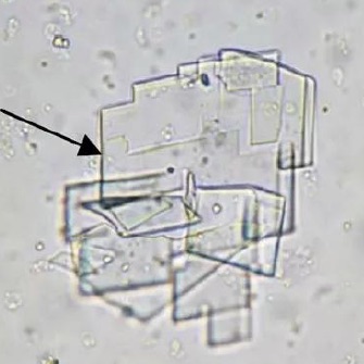 如图所示,尿液沉渣中的结晶是